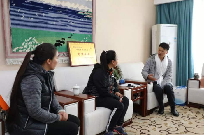 2019年5月14日上午,嘉黎縣扶貧辦主任、脫貧攻堅(jiān)指揮部辦公室副主任才旦卓嘎和嘉黎縣脫貧攻堅(jiān)指揮部轉(zhuǎn)移就業(yè)組負(fù)責(zé)人(副組長(zhǎng))卓央開(kāi)車(chē)經(jīng)過(guò)七個(gè)多小時(shí)的長(zhǎng)途跋涉來(lái)到我院,只為親自獻(xiàn)上潔白的哈達(dá),送來(lái)所有鄉(xiāng)親們的問(wèn)候和祝福,向阜康和王斌董事長(zhǎng)表達(dá)深深的感激之情!
