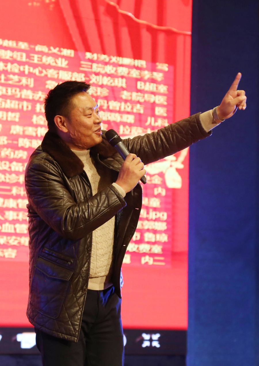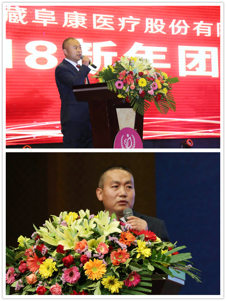 隨后,董事長(zhǎng)王斌走上講臺(tái)飽含激情地說(shuō)"我之存在,因?yàn)橛心恪保⑾蛩衼?lái)賓鞠躬致謝。董事長(zhǎng)王斌講述了阜康發(fā)展史、阜康人的奮斗史,從2005年的47名員工到現(xiàn)在的1024名員工,并再次感謝一路伴隨阜康成長(zhǎng)的所有人,還指出2018年是阜康發(fā)展史上很關(guān)鍵的一年,要早計(jì)劃、早安排、早部署,要以十九大精神為指導(dǎo),堅(jiān)持科學(xué)發(fā)展觀,早日把阜康建設(shè)成為現(xiàn)代化醫(yī)院。