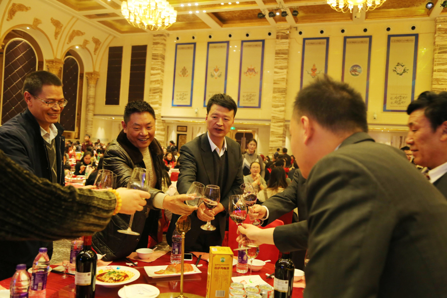 晚宴尾聲,董事長(zhǎng)王斌邀請(qǐng)所有院級(jí)領(lǐng)導(dǎo)上臺(tái)共同舉杯說(shuō):"希望大家在新的一年繼續(xù)沿著創(chuàng)新的道路團(tuán)結(jié)一致、規(guī)范管理、用心服務(wù),開(kāi)源節(jié)流地做好自己本職和醫(yī)院的工作。我相信,在各位阜康同仁的共同努力下,2018年我們一定會(huì)保質(zhì)、保量完成工作計(jì)劃。為保障西藏自治區(qū)廣大人民群眾的身體健康做出新的更大的貢獻(xiàn),促進(jìn)醫(yī)院健康、持續(xù)、穩(wěn)步地向前發(fā)展,更上一層樓,再鑄新輝煌! ”