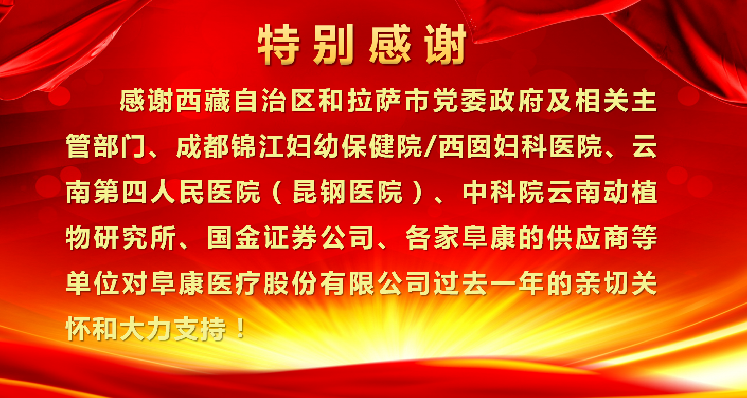我之存在,因?yàn)橛心?;百年阜康,感恩有您。感恩是一種態(tài)度、一種美德、一種情懷!不忘初心、砥礪前行,感謝你們的一路陪伴,阜康的輝煌離不開(kāi)每一位阜康人的奉獻(xiàn),雄關(guān)漫道真如鐵,而今邁步重頭越!2018年將是阜康騰飛的一年,在各級(jí)領(lǐng)導(dǎo)關(guān)心下,各位同仁支持下,阜康一年更比一年好!以十九大精神為指導(dǎo),努力打造"團(tuán)結(jié)、創(chuàng)新、規(guī)范、節(jié)約、用心”五位一體的現(xiàn)代化醫(yī)院!為西藏人民群眾解決看病遠(yuǎn)、看病難、看病貴的問(wèn)題,全心全意為西藏人民健康服務(wù)!