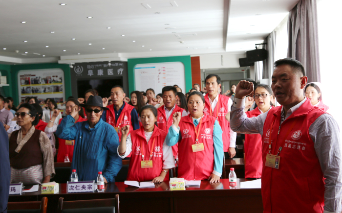 會上,西藏志愿者聯(lián)合服務會副秘書長在致辭中對"阜康雪域天使志愿者服務隊”的工作作出了肯定,表示參與志愿服務工作,既是"助人”、亦是"自助”,既是"樂人”,又是"樂己”,"贈人玫瑰、手留余香”。她希望阜康雪域天使志愿者服務隊展現(xiàn)醫(yī)療工作者的濟世情懷,通過貼心的服務化解醫(yī)患矛盾,通過親切的溝通促進醫(yī)患關(guān)系,為保障群眾生命健康貢獻力量。