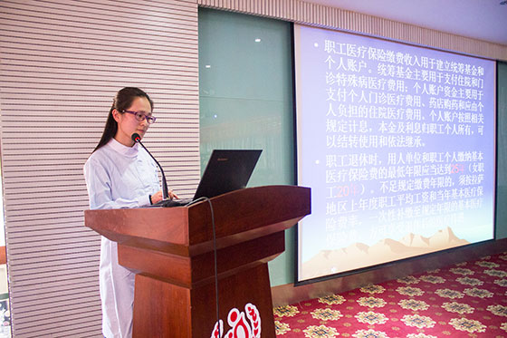 在隨后的醫(yī)保知識(shí)培訓(xùn)中,醫(yī)保辦張燕平同志為新入職的臨床工作人員仔細(xì)講解了包括基本醫(yī)療保險(xiǎn)、門診特殊病、大額醫(yī)療費(fèi)商業(yè)補(bǔ)充保險(xiǎn)、拉薩市醫(yī)療救助"一站式”即時(shí)結(jié)算服務(wù)、新農(nóng)合等有關(guān)醫(yī)保方面的專業(yè)知識(shí),以方便臨床醫(yī)務(wù)工作者在以后的各項(xiàng)實(shí)際工作中能與醫(yī)保進(jìn)行很好的銜接,從而提高醫(yī)院醫(yī)?;鸢踩褂寐?,遏制醫(yī)療費(fèi)用的不合理增長(zhǎng),維護(hù)參保人員的合法權(quán)益,促進(jìn)各項(xiàng)醫(yī)療保險(xiǎn)制度更加穩(wěn)妥、有序地發(fā)展。