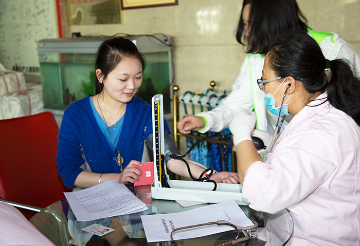 參加獻(xiàn)血的醫(yī)務(wù)人員填寫表格