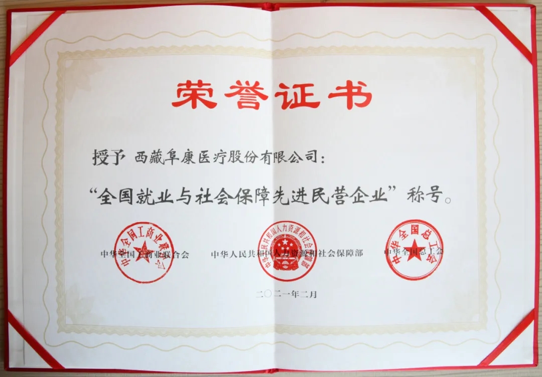 "就業(yè)是最大的民生,收入是民生之源”,西藏阜康醫(yī)療股份有限公司將以本次榮獲"全國就業(yè)與社會保障先進(jìn)民營企業(yè)”為新的起點(diǎn),繼續(xù)加大就業(yè)與社會保障工作力度,在企業(yè)發(fā)展的同時進(jìn)一步增加吸納就業(yè)人數(shù),引進(jìn)高級專業(yè)技術(shù)人才,加大現(xiàn)有人員技能培訓(xùn)力度,努力提高職工收入水平,為全面推進(jìn)社會主義現(xiàn)代化建設(shè)和鄉(xiāng)村振興事業(yè)做出應(yīng)有的貢獻(xiàn)。
