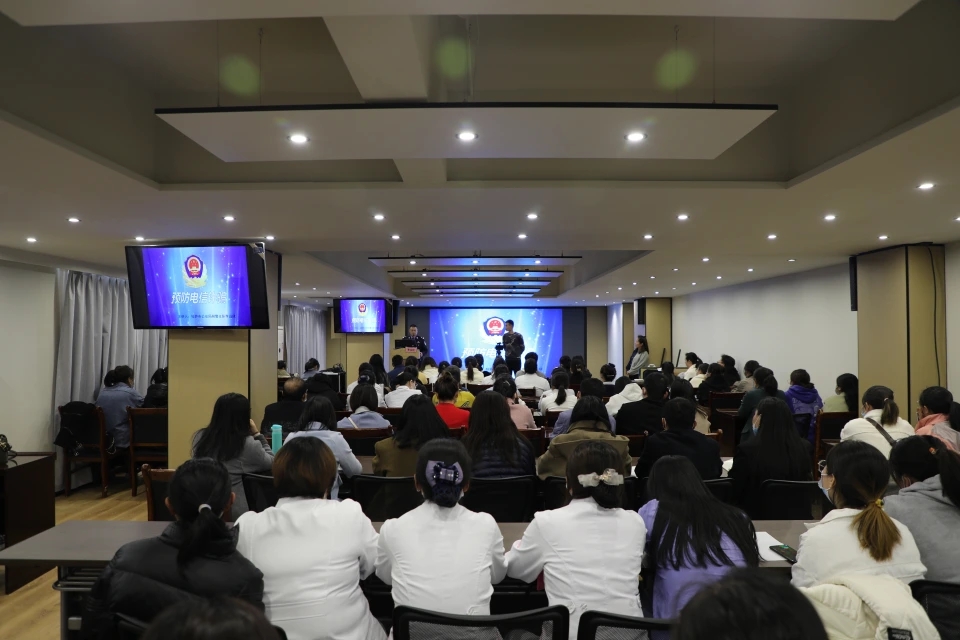 3月3日至4日,為了提高全院職工反詐騙能力,由阜康醫(yī)療黨委辦公室組織,由拉薩市公安局反詐騙中心主講的"預(yù)防電信詐騙”專題講座在西藏阜康醫(yī)院婦產(chǎn)兒童院區(qū)(院區(qū)三)行政辦公區(qū)會議室舉行,拉薩市公安局反詐騙中心李遠(yuǎn)欣警官主講授課,我院全體醫(yī)生、技師分兩批次參加了本次培訓(xùn)(全體行政后勤、護理人員已在之前參加了培訓(xùn)),培訓(xùn)會由黨委辦公室喬倩主持。