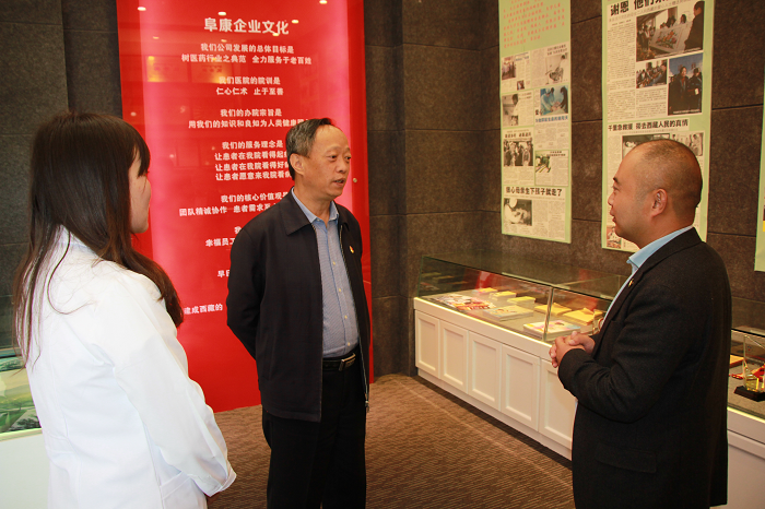 在阜康醫(yī)院五樓院史館,劉連福向劉家杰一行介紹了阜康醫(yī)療不平凡的發(fā)展歷程以及阜康人在黨的建設(shè)、抗震救災(zāi)、公益事業(yè)、企業(yè)文化等方面的成就,劉家杰一行對(duì)阜康醫(yī)療各方面的工作表示充分認(rèn)可并對(duì)"阜康”中所含的物阜民康——"物產(chǎn)豐富,民族安康”之意表現(xiàn)出極大的興趣,希望通過阜康人在醫(yī)藥領(lǐng)域的不懈努力,勇于攀登醫(yī)學(xué)高峰,為西藏的醫(yī)療發(fā)展貢獻(xiàn)力量。